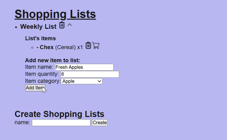 A web application where users could log reciepts for grocery purchases and create shopping lists. I worked on designing and implementing both the front-end application and back-end API.