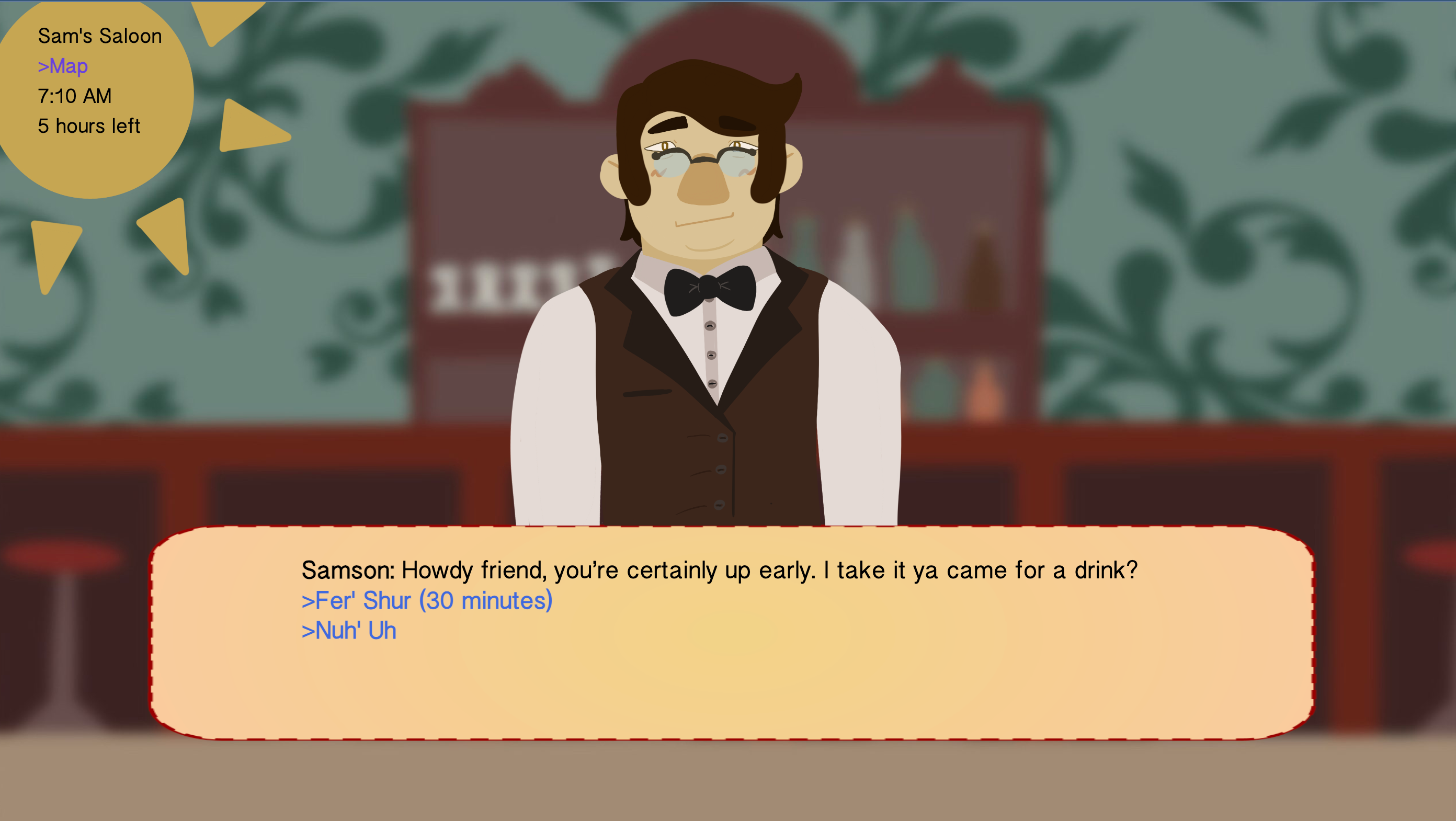 A visual novel set in the wild west using the Twine framework. I led the projects development and helped design time progression system using spreadsheets.